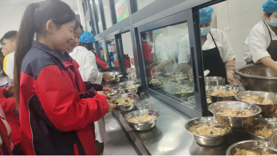 学校食堂管理人员周蕾说:“开学初,学校严格按照程序招聘了大厨师、面点师等17人,合理分工,每天早餐增加了热菜、点心,午餐增加至三到四个热菜,晚餐就餐人数最多,孩子们正在长身体,必须保证他们有充分的营养。”