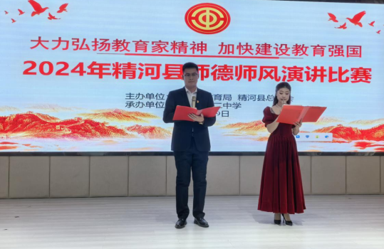 10月27日,精河县教育局、精河县总工会联合举办“大力弘扬教育家精神,加快建设教育强国”师德师风演讲比赛,全县各学校书记、教师、局机关干部代表150余人参会聆听。精河县党委教育工委副书记、教育局党组书记、副局长杜萍,精河县总工会党组书记、主席张雪灵参加活动并讲话。