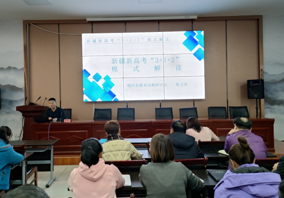 讲座中,张玉堂主要围绕“新高考模式的政策背景”“新疆《改革方案》及核心内容”“选科原则”“赋分机制”等关键内容进行详细解读。从宏观视角对新高考模式改革政策进行了全面系统的讲解,重点介绍了新高考政策下的考试模式与考试时间的变化;从专业覆盖度、学科关联度等角度分析不同组合下的选科特点,张主任科学严谨、深入浅出地讲授弥补了大家在高校招生要求、选科指引等方面的认识空缺。他强调,新高考改革打破了传统的文理分科模式,实行“3+1+2”的选科模式,更加注重学生的个性发展和能力培养,为学生的全面发展和综合素质的提升创造更加有利的条件。
