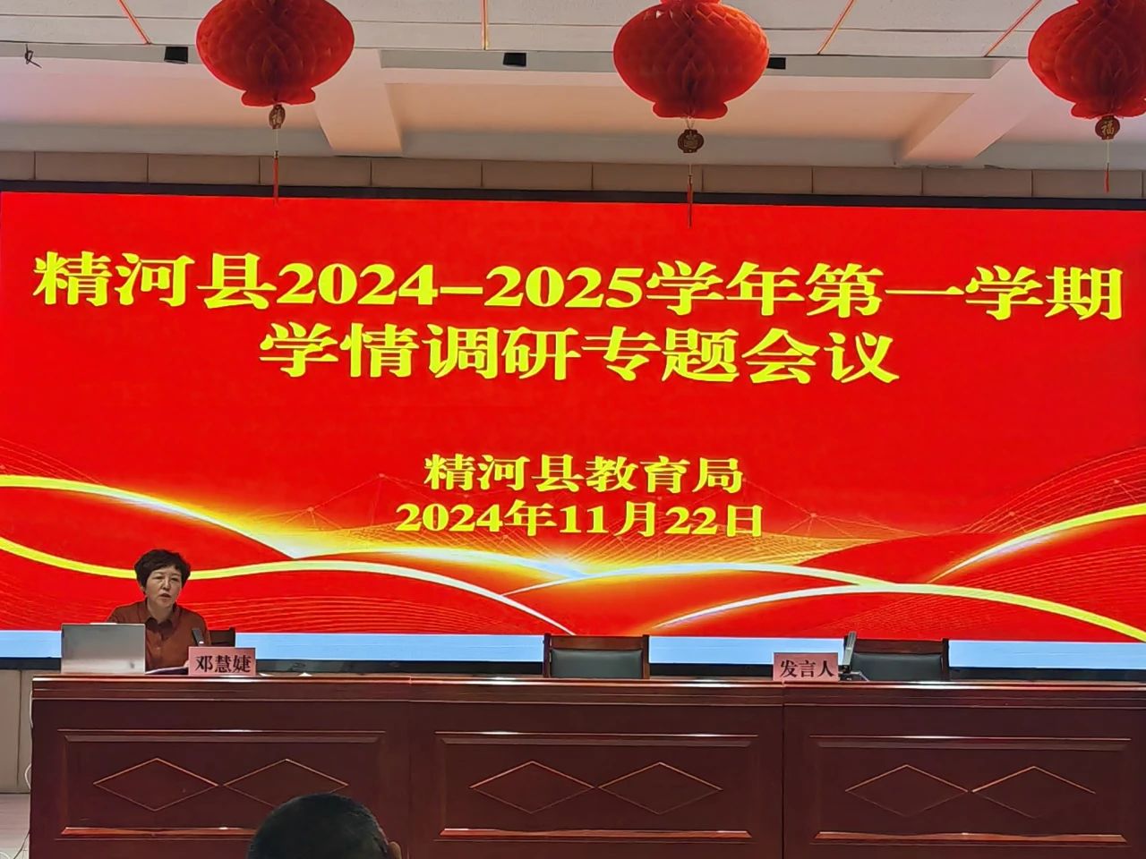 11月22日下午,精河县教育系统召开2024-2025学年第一学期学情调研专题会议。会议由县教育局教学研究中心主任邓慧婕主持。各中小学书记、校长、教学副校长、教务主任、教研主任及教研中心全体成员共计70余人参会。