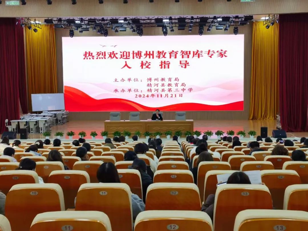 11月21日,博州教育局邀请国家“万人计划”教学名师、教育部统编教材《道德与法治》核心编者、武汉市解放中学副校长吴又存,湖北省特级教师、教育部课题研究先进工作者、武汉市第四中学政治名师高海英到精河县第三中学开展入校调研指导,博州教育局教研中心思政教研员李彦彤,精河县委教育工委副书记、教育局党组书记、副局长杜萍,精河县教育局教研中心主任邓慧婕、副主任张玉堂,精河县第三中学党总支书记蔡英春陪同。精河县教育局班子成员、机关干部,各中小学书记、校长、德育主任、思政教师等160余人参加。
