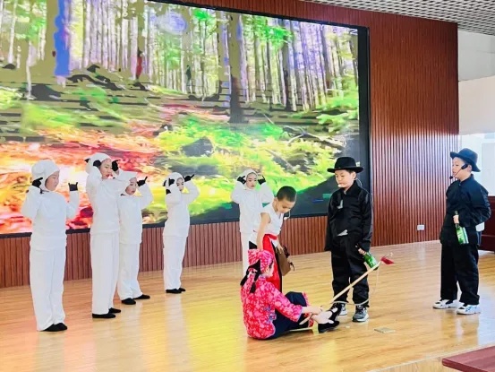 积极打造红色课堂 构建红色育人体系学校将红色教育与课堂教学相结合,各学科根据自身课程的特点,进行红色课程资源的挖掘与渗透,如音乐课教唱红歌,语文课组织学生红色课本剧表演,班会课观看红色电影等;将红色教育与德育相结合,开展创建“红色文明班”、争做“好少年红色标兵”活动;将红色教育与书香校园建设相结合,每学期推荐一批红色经典书目且供全校师生借阅,每个班建立“红色革命图书角”。