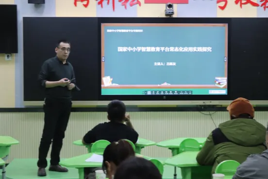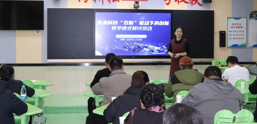 讲座中,县人民政府教育督导室办公室主任王斌围绕新一代信息技术融合物联网、云计算、大数据、人工智能、区块链、5G通信等前沿技术开展讲座分享。工作室主持人雍凤仙分享讲座《物联网——玩转掌控板》,展示了在新课标新教材实施过程中的教学创新案例,涵盖教学设计、具体实施过程、学生反馈以及教学效果等方面。教研中心信息科技教研员吕新友以片段课的形式,对国家中小学智慧教育平台的常态化应用进行了实践探究。