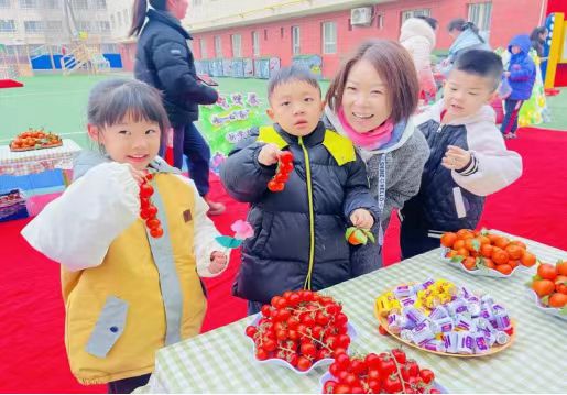 在哪吒迎春区,幸福幼儿园的孩子们选取各色的纸花粘贴春天和希望。哪吒点春,老师们在孩子眉心点朱砂开智,寓意孩子们聪明伶俐。哪吒福春,米呐百家福,老师收集孩子们带来的五谷杂粮,寄托对美好生活的向往;哪吒“咬春”,孩子们拿着水果,寓意食欲大开、健康成长。