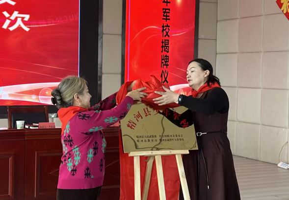 仪式现场,县教育局党组成员、教育工会主席加孜拉·巴哈提和退役军人事务局副书记、局长巴哈提·伊米达共同为“少年军校”揭牌。金色牌匾揭开的瞬间,现场掌声雷动,同学们昂首肃立,目光坚定。