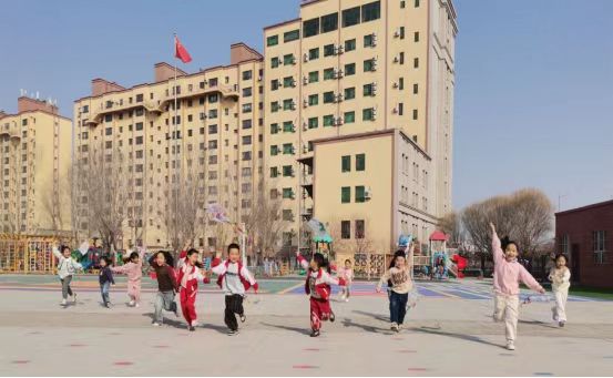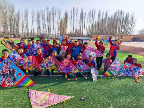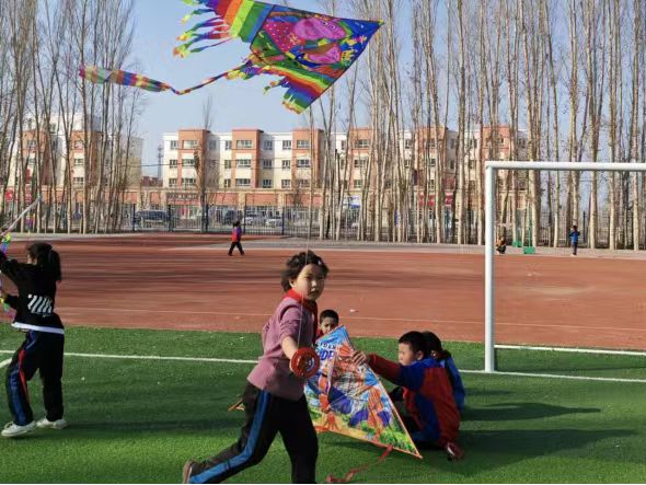 铃声一响,阿合其农场小学的操场上也热闹起来,同学们分组合作,互相帮助,有的一边奔跑一边放飞,有的负责调整风筝线,还有的在一旁加油助威。每当有风筝成功飞上天空,操场上便会响起一阵阵欢呼声。