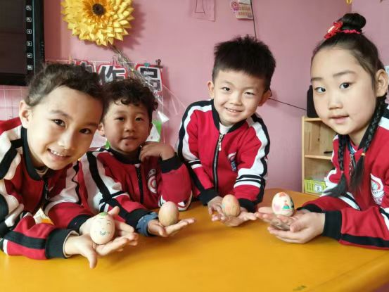 “我要画会跳舞的蝴蝶!”孩子们围坐在桌子前,用彩笔、颜料等装饰蛋壳,一颗颗精心装扮的彩蛋,成为孩子们之间传递友谊与快乐的使者。