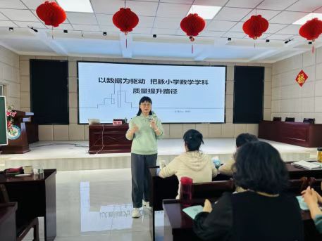 活动尾声,县教研中心主任邓慧婕做总结发言。她强调,教师需以此次活动为契机,将核心素养培育融入日常教学:一方面“向下扎根”深耕教材逻辑,精准把握学情,以数据驱动教学决策;另一方面“向上生长”探索跨学科融合,创设真实问题情境,激发学生高阶思维。