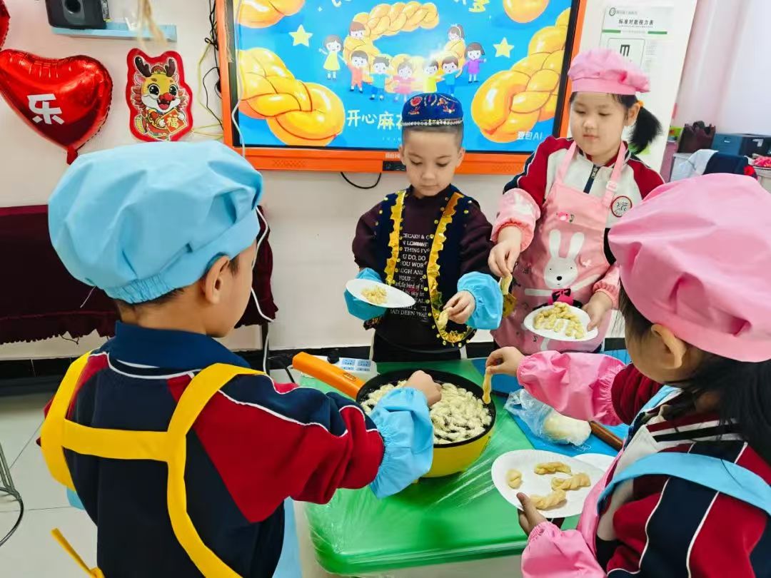 经过一番努力,一根根金黄酥脆的小麻花新鲜出炉。孩子们品尝着自己亲手制作的美食,脸上洋溢着幸福和自豪的笑容。他们将自己制作的小麻花分享给其他班级的老师和小朋友,传递着这份快乐和温暖。