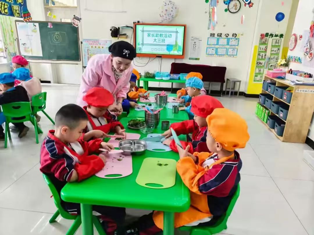 活动中,王梓訫妈妈通过“讲解+演示”的方式,从菠菜的择洗、焯水,到鸡蛋的搅拌,再到两者混合、调味、蒸制,每一步都依次展现。随后,在家长的指导下,小朋友们纷纷动手尝试,有的小心翼翼地搅拌鸡蛋,有的帮忙投放调料,还有的认真摆放蒸制的容器,现场气氛热烈而温馨。