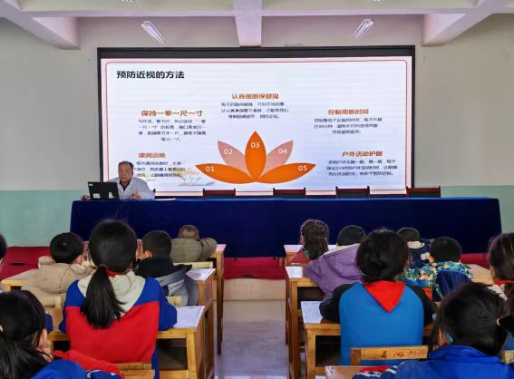健康副校长进校宣讲。邀请健康副校长深入校园,围绕“近视成因、危害及预防方法”开展专题讲座,通过案例分析和互动答疑,引导学生养成科学用眼习惯。