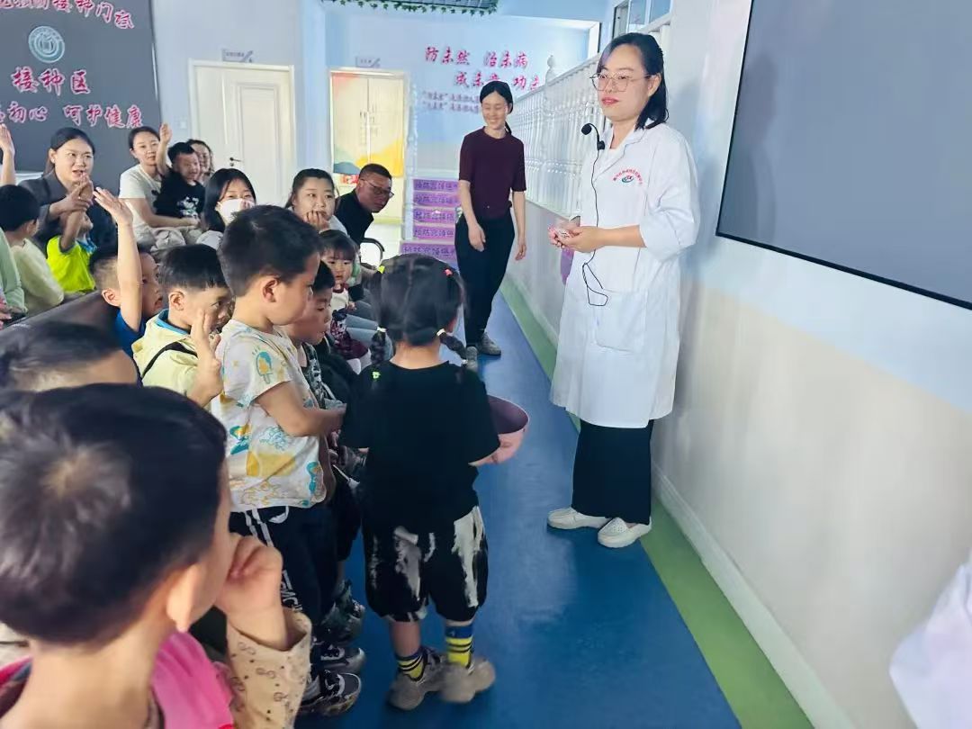 活动现场,疾控中心工作人员化身“科普达人”,通过图片讲解、趣味问答、情景创设等方式,向幼儿详细讲解传染病的传播途径和预防措施,着重介绍流行性感冒、诺如病毒、疱疹性咽峡炎、手足口病、水痘、流行性腮腺炎等常见疾病的发病特点、主要症状、传染源、传播方式,并将“七步洗手法”与儿歌相结合,在朗朗上口的旋律中普及健康的生活方式,让幼儿知道如何更好地保护自己。