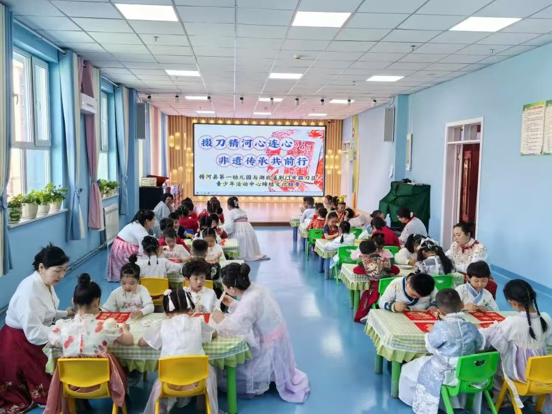 非遗文化成为联结情感的纽带。精河县第一幼儿园的孩子们收到湖北寄来的拓印材料包,将艾德莱斯绸纹样与京剧脸谱创意融合;县第三中学学生把胡杨林、天山雪莲绘上风筝,写下“考到武汉读大学”的梦想。剪纸、风筝制作等非遗技艺,正转化为促进交流的生动课程。
