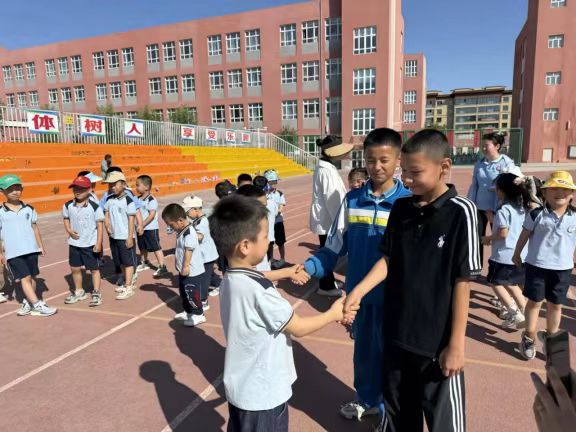恰逢小学大课间,孩子们来到操场,观看整齐的广播体操、有趣的集体游戏和充满挑战的跳绳运动。随后,他们也加入其中,与哥哥姐姐一起奔跑、跳跃,感受课间生活的活力与自由。