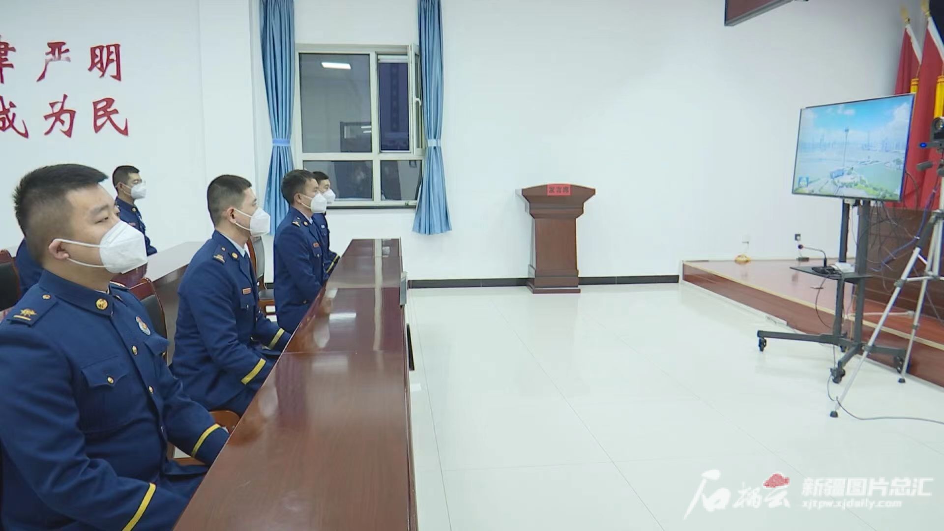 12月31日,沙湾市消防救援大队消防救援人员集中收看习近平主席发表新年贺词。焦祖卿 摄