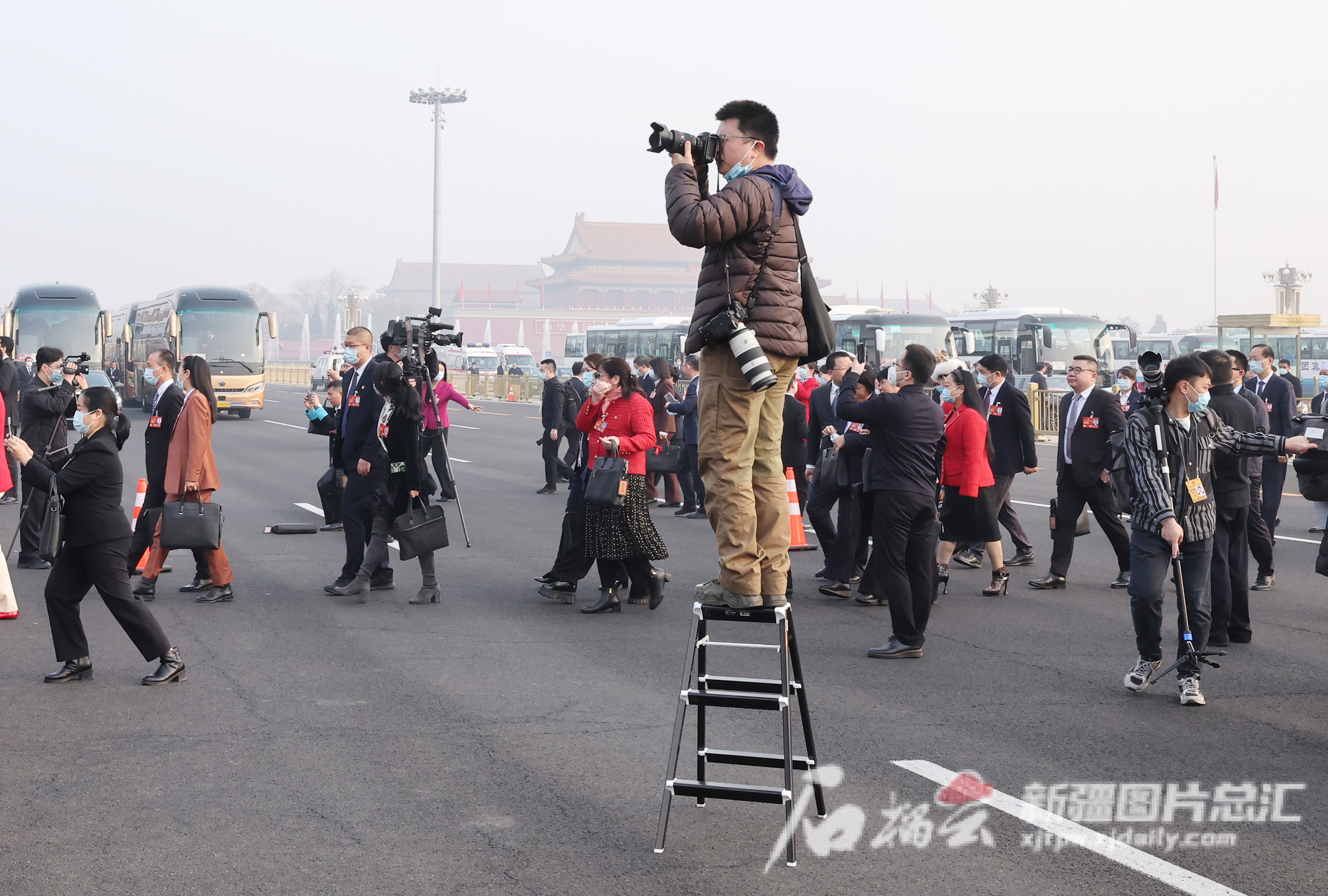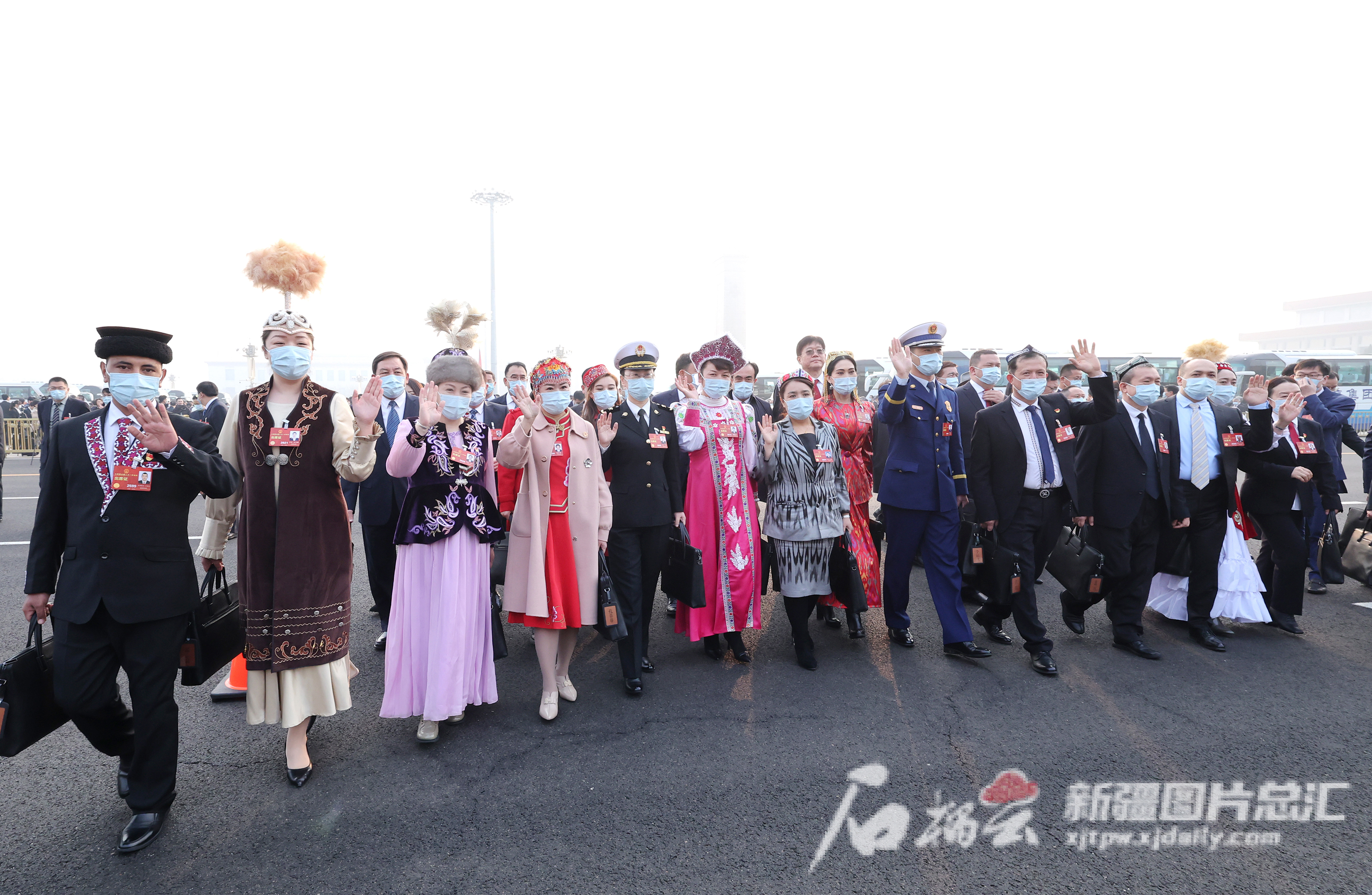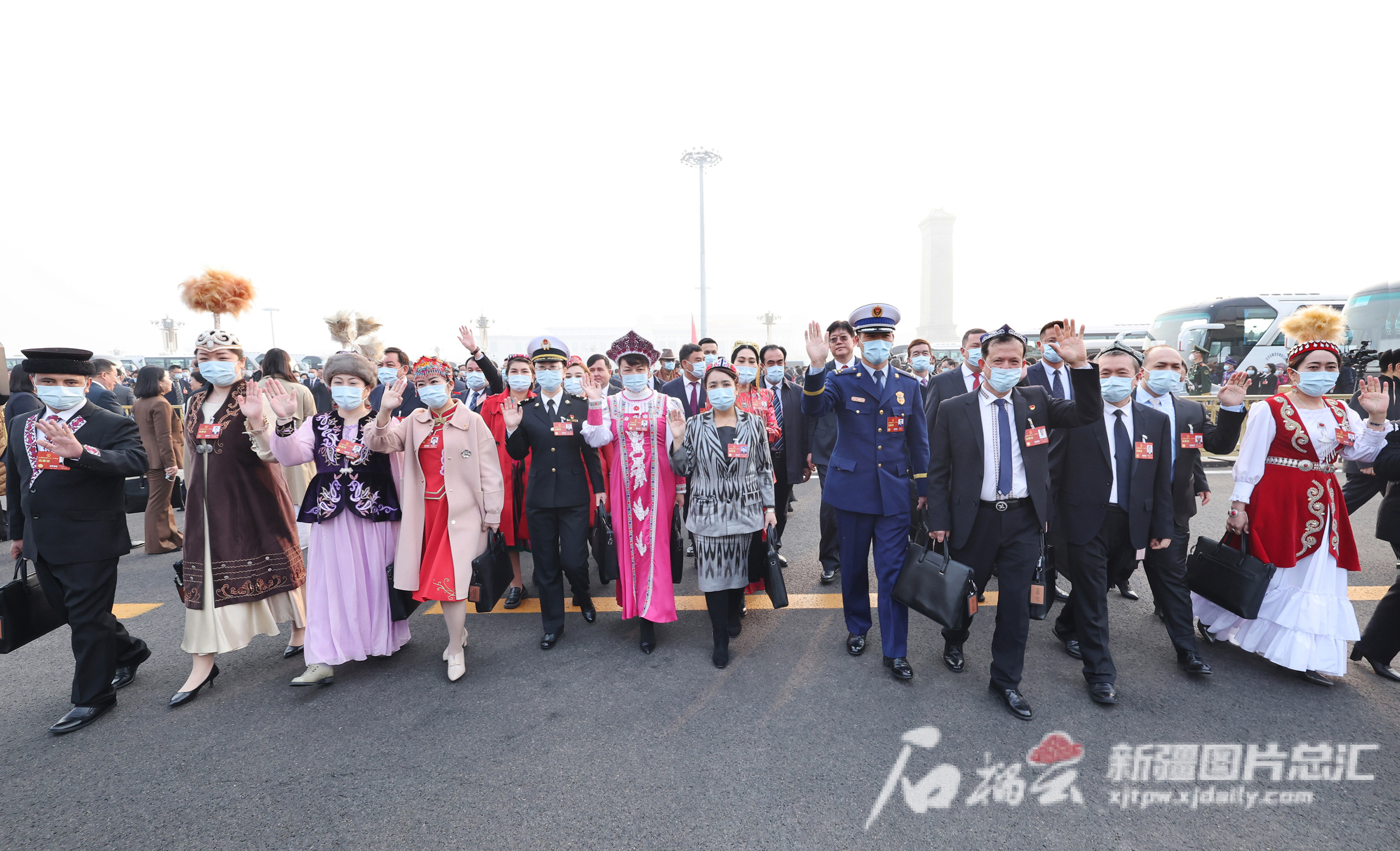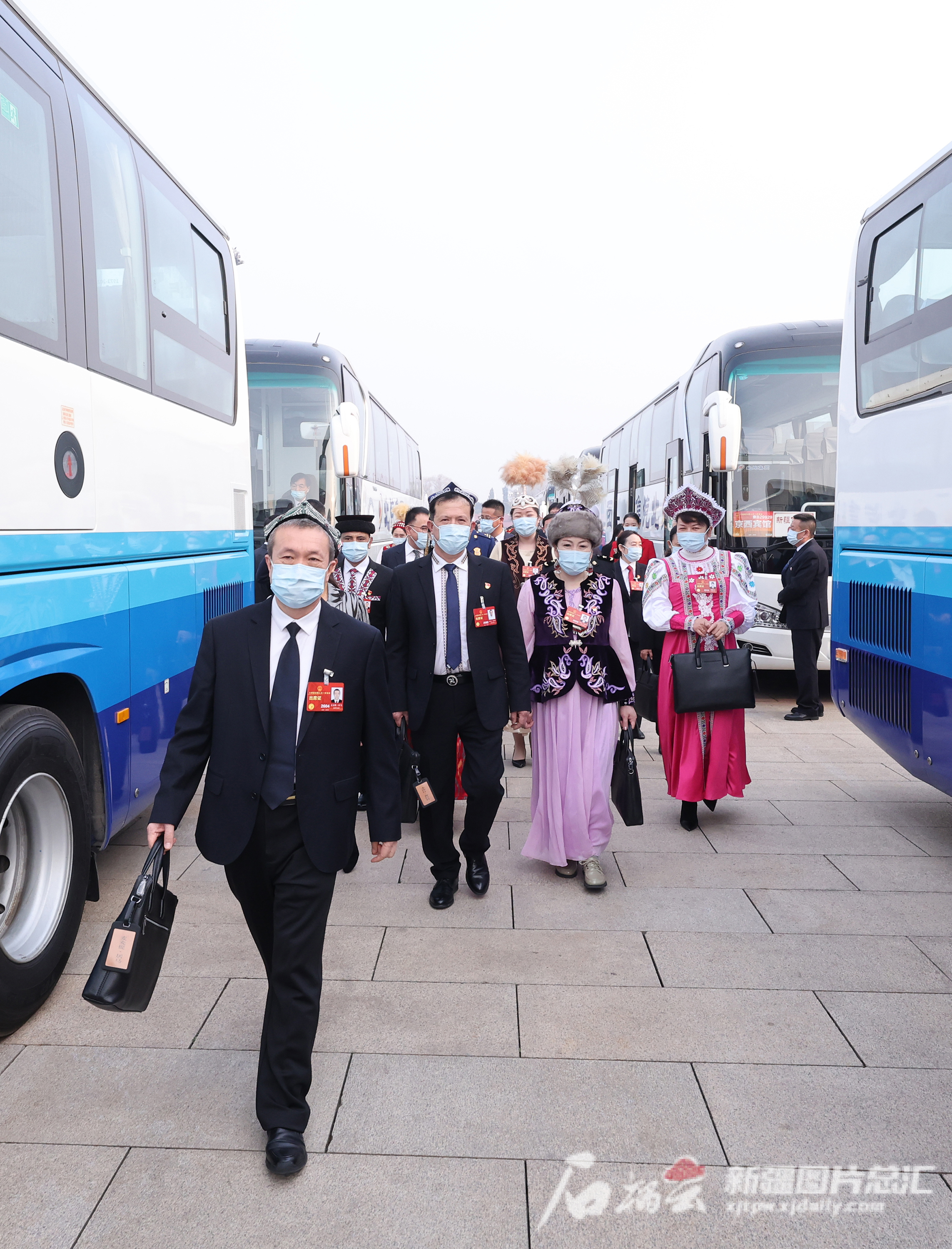 3月5日,十四届全国人大一次会议在北京人民大会堂开幕。这是新疆代表团代表乘车抵达天安门广场准备步入会场。天山网-新疆日报记者 崔志坚摄
