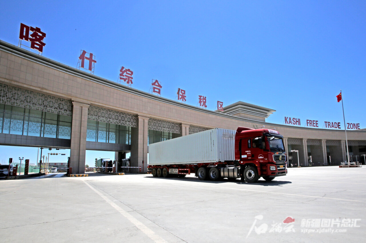 2022年6月14日,车辆驶出喀什综合保税区。天山网-新疆日报记者 蔡增乐 摄