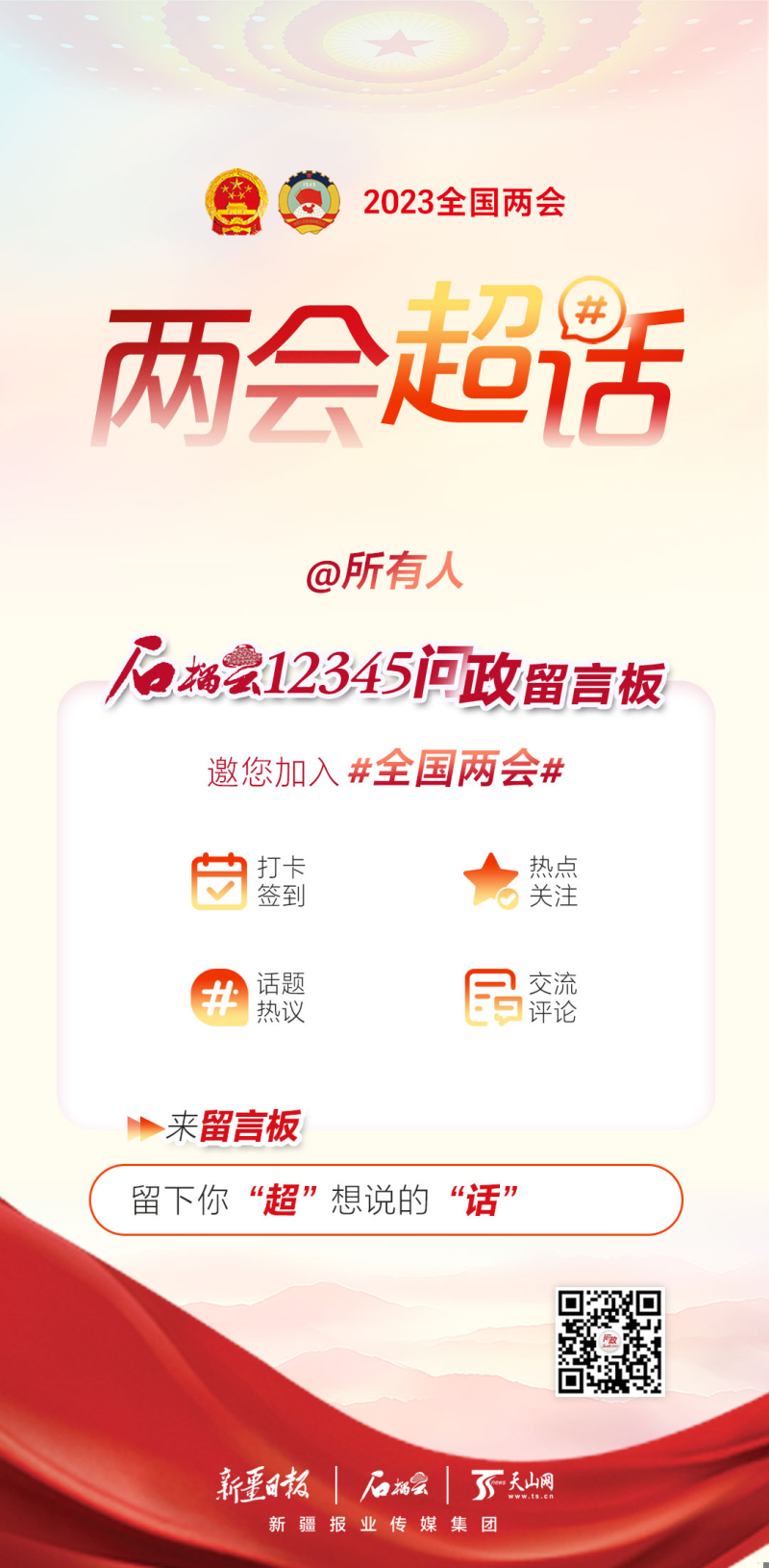 参与方式:打开石榴云客户端,点击客户端下方圆形“问政”按钮进入“石榴云12345问政”留言板,写下您的意见建议;或进入“公共体育场馆能否免费开放?”话题,参与评论交流。