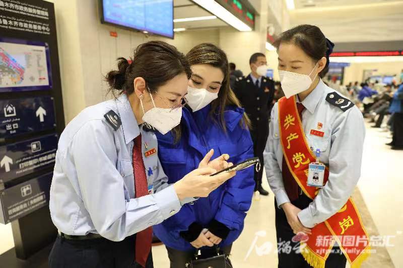 2月16日,全国人大代表、乌鲁木齐广播电视台(广播电视集团)广播中心记者再依努热·塔里哈提来到乌鲁木齐市益民大厦办税服务厅调研。本人提供