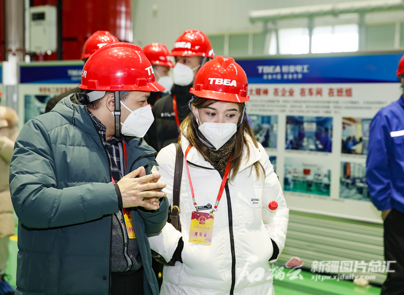 全国人大代表、新疆雪峰科技(集团)股份有限公司生产保卫部生产管理部副部长木沙·买买提(左)在参加集中视察。图片由本人提供