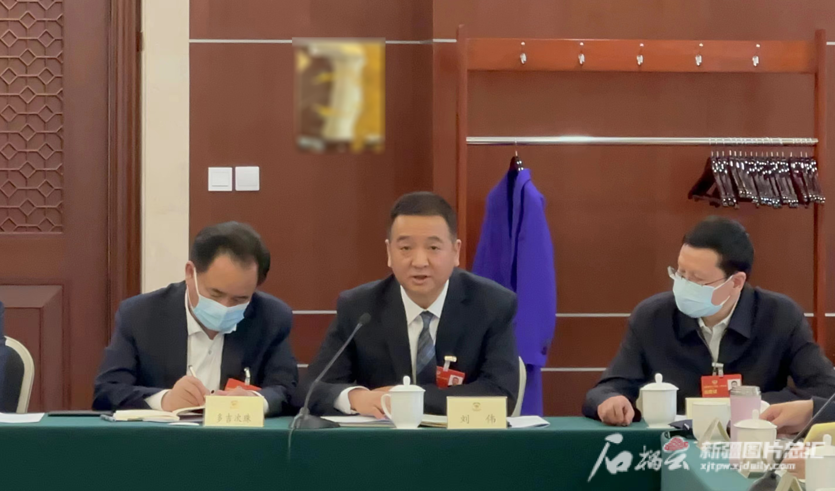 全国政协委员、新疆君邦投资有限公司董事长刘伟(中)在小组讨论时发言。本人供图