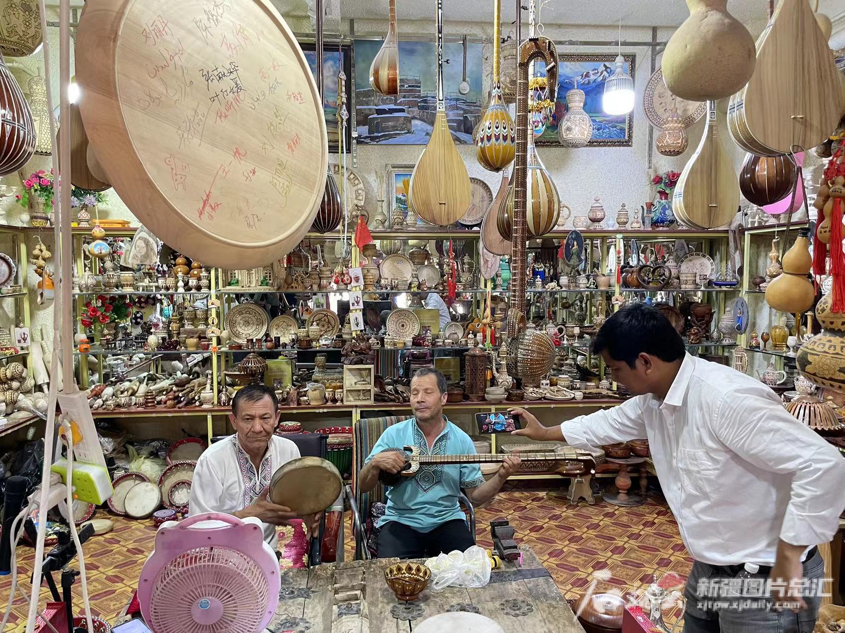 孟加拉国媒体代表团在疏附县中国新疆民族乐器村参观。天山网-新疆日报记者 郭玲摄