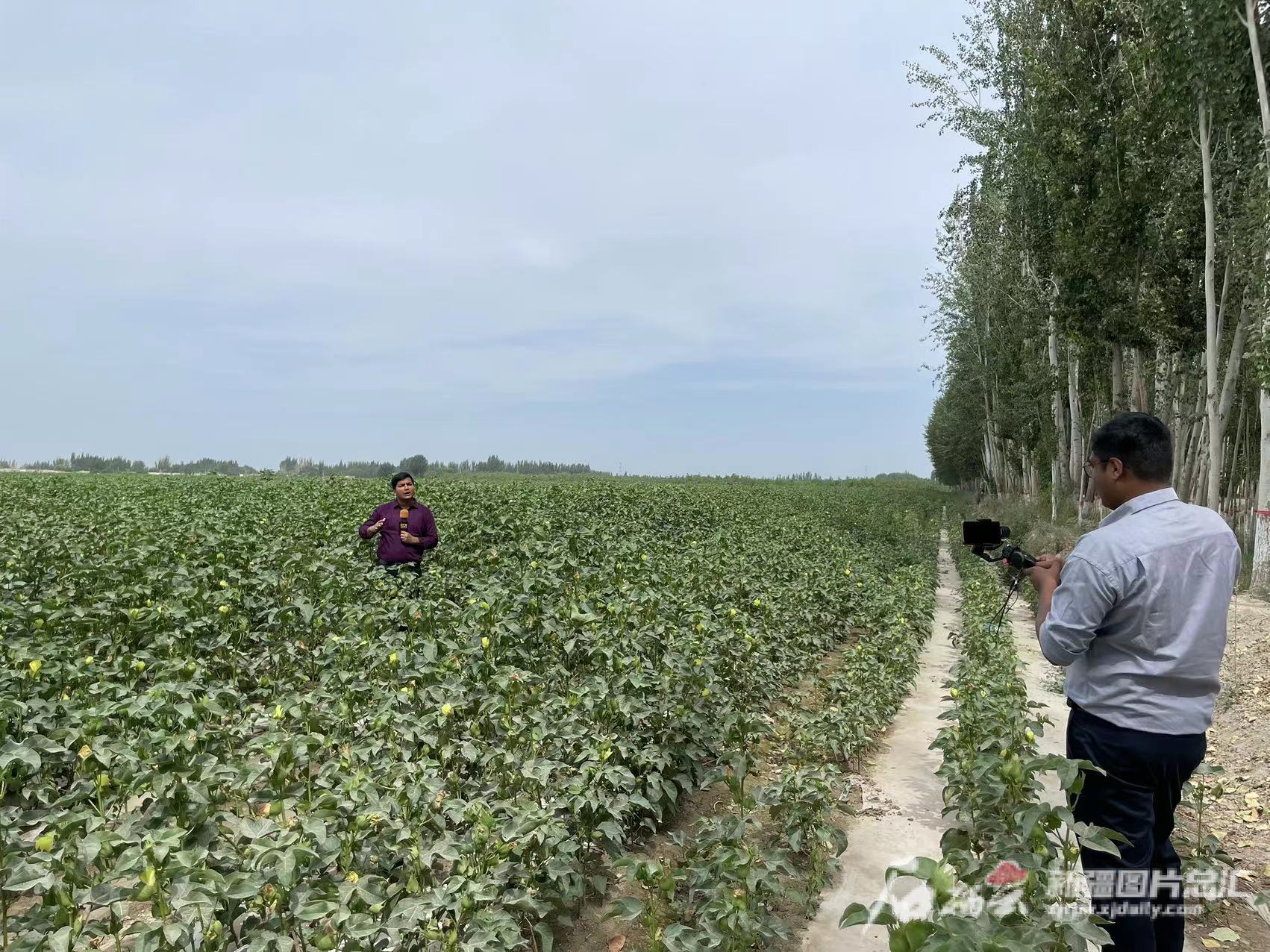 孟加拉国媒体代表团在阿克苏地区阿瓦提县拜什艾日克镇库木奥依拉村棉田进行报道。天山网-新疆日报记者 郭玲摄