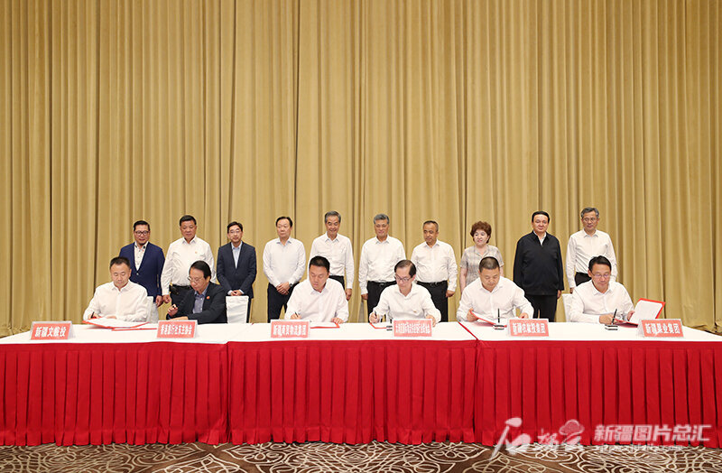 座谈会上,双方有关企业签订战略合作框架协议。天山网-新疆日报记者 崔志坚 摄