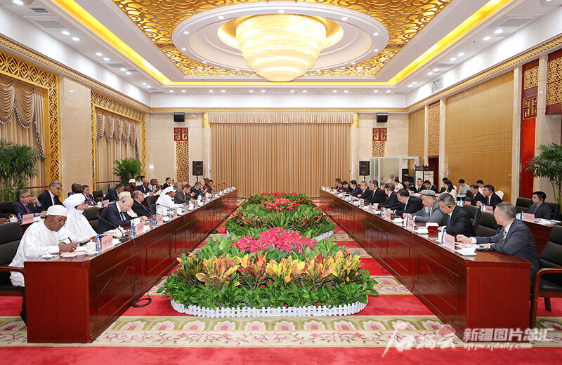 8月20日,自治区党委书记马兴瑞、自治区主席艾尔肯·吐尼亚孜在乌鲁木齐会见伊斯兰合作组织代表团一行。天山网-新疆日报记者 崔志坚 摄