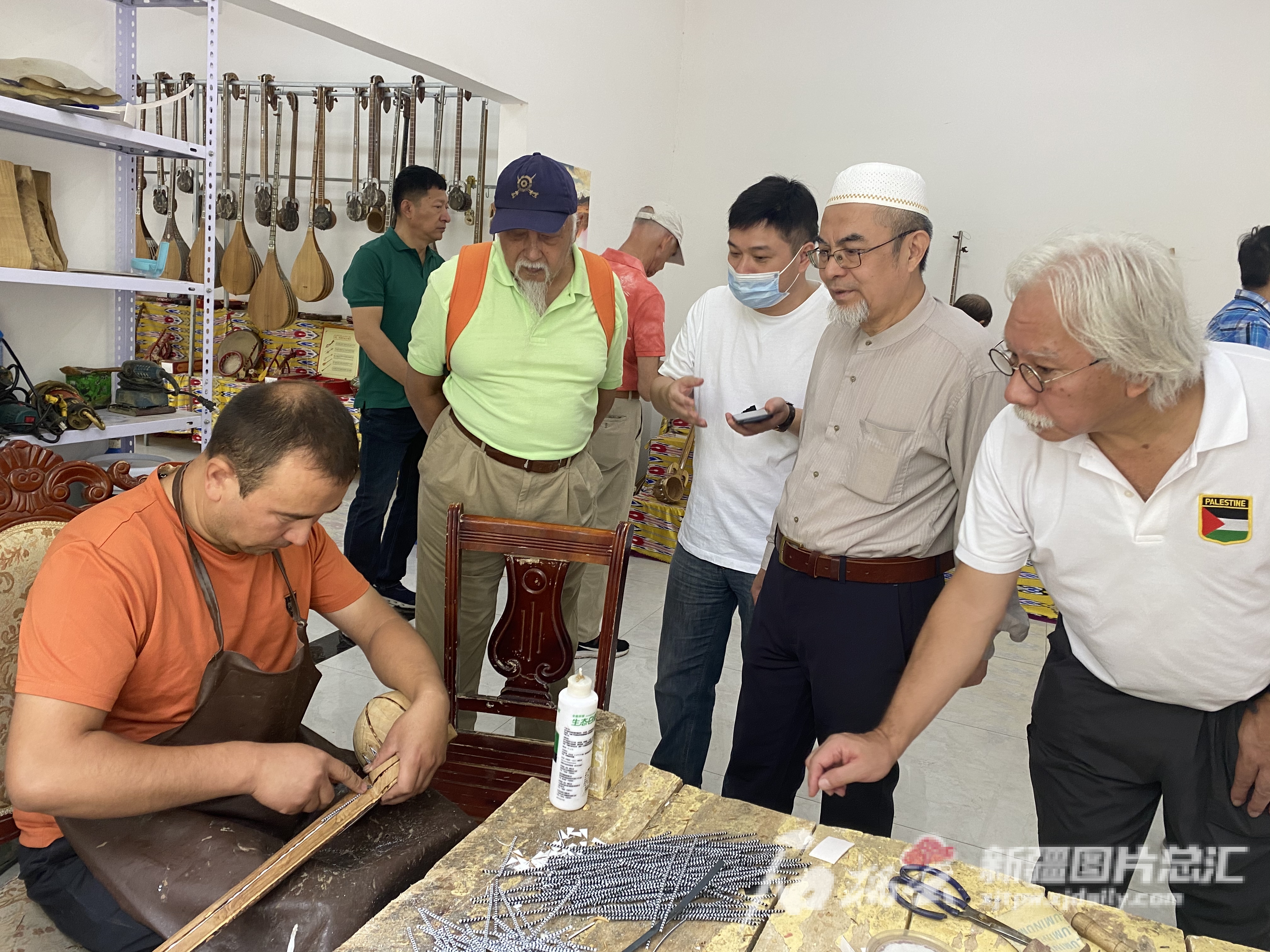 8月19日,代表团在疏附县中国新疆民族乐器村观看工匠制作乐器。天山网-新疆日报记者沈祖孝 摄