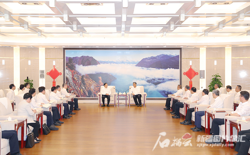 8月30日至9月2日,湖北省委副书记、省长王忠林率湖北省党政代表团来新疆考察对接对口支援工作。这是9月1日,自治区党委书记、新疆生产建设兵团党委第一书记、第一政委马兴瑞,自治区党委副书记、自治区主席艾尔肯·吐尼亚孜在乌鲁木齐会见代表团一行。石榴云/新疆日报记者 崔志坚摄