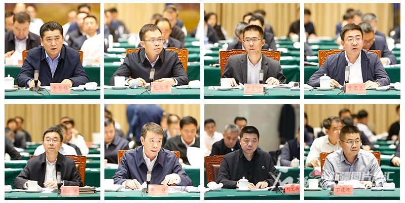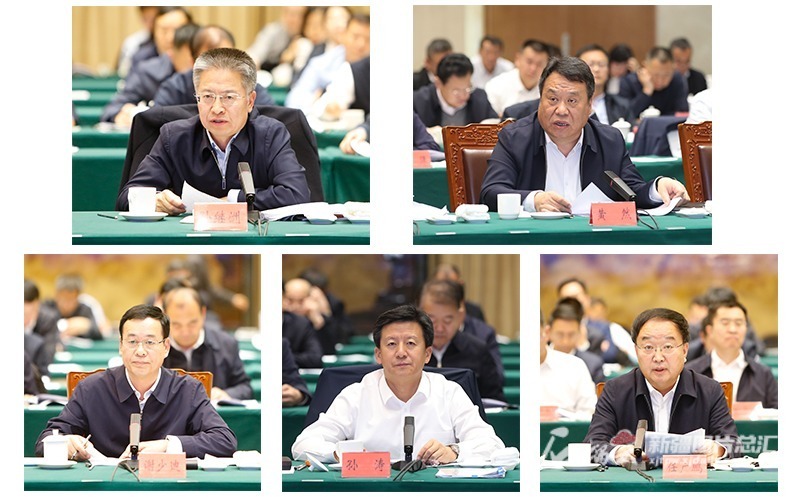 会上,自治区自然资源厅、兵团自然资源局负责同志汇报了新一轮找矿突破战略行动工作情况。阿勒泰地区、哈密市、巴音郭楞蒙古自治州负责同志介绍了矿产资源勘查开发措施、成效及下一步工作方向(从左至右,从上至下)。天山网-新疆日报记者 崔志坚摄