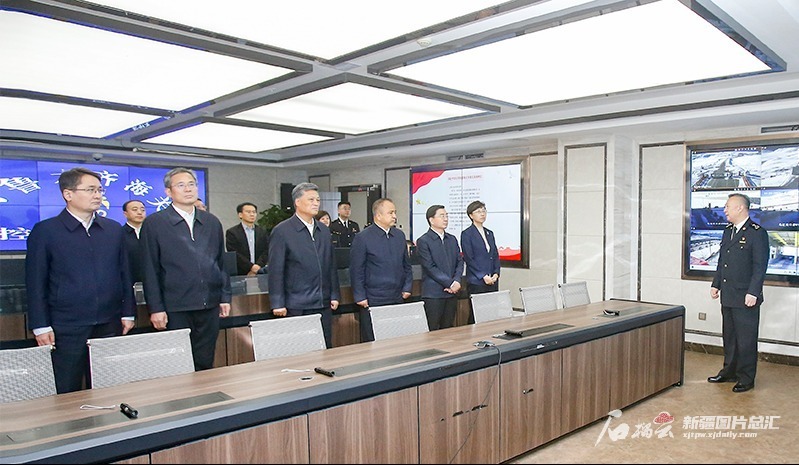 11月22日,自治区党委书记马兴瑞,自治区党委副书记、自治区主席艾尔肯·吐尼亚孜在乌鲁木齐海关调研。天山网-新疆日报记者谢龙摄