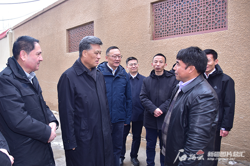2月6日,自治区党委书记马兴瑞在和田市拉斯奎镇库勒莱克村亲切看望慰问村“两委”班子、第一书记和驻村工作队成员等。张勇摄