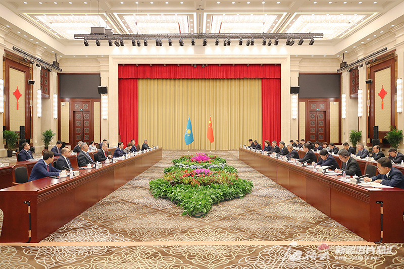 哈萨克斯坦驻华大使和议会下院有关人员参加会见。