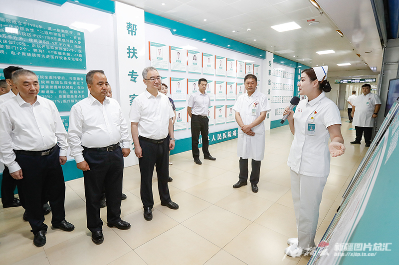 8月20日至22日,安徽省委副书记、省长王清宪率安徽省代表团来新疆考察对接对口支援工作。这是8月21日,安徽省委副书记、省长王清宪,自治区党委副书记、自治区主席艾尔肯·吐尼亚孜,在皮山县人民医院调研医院建设情况,了解援疆医疗人员工作开展情况。石榴云/新疆日报记者 谢龙摄
