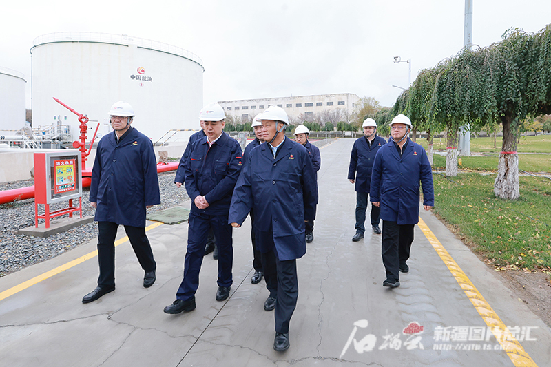 11月8日,自治区党委书记马兴瑞来到中航油新疆航空油料有限公司调研,听取工作介绍,察看油罐区管理实况。石榴云/新疆日报记者 崔志坚摄