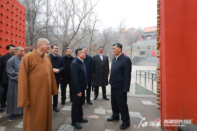 11月13日,自治区党委书记马兴瑞来到乌鲁木齐清泉禅寺,了解寺院管理和群众开展宗教活动情况。石榴云/新疆日报记者 崔志坚摄