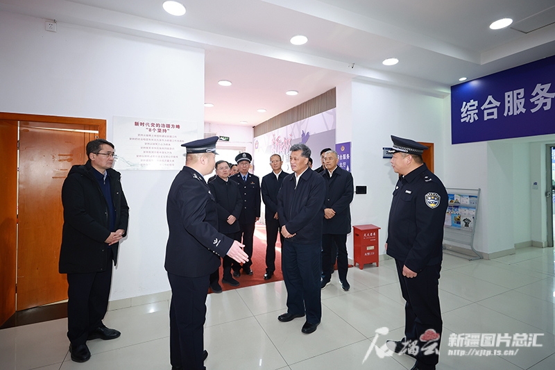 11月18日,自治区党委书记马兴瑞来到克拉玛依区公安分局胜利路派出所,调研维护稳定、服务群众等情况。石榴云/新疆日报记者 崔志坚摄