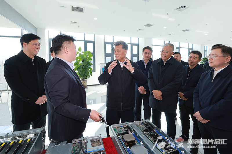 11月18日,自治区党委书记马兴瑞来到位于克拉玛依市云计算产业园区的碳和网络科技有限公司,详细了解企业参与云计算产业发展情况。石榴云/新疆日报记者 崔志坚摄