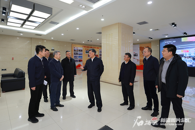 11月25日,自治区党委书记马兴瑞来到新疆广播电视局,听取工作介绍,察看业务处室设置和工作运行情况。石榴云/新疆日报记者 崔志坚摄