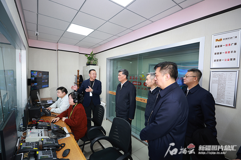 11月25日,自治区党委书记马兴瑞在新疆广播电视台949交通广播直播间,了解广播内容生产、采编队伍建设情况。石榴云/新疆日报记者 崔志坚摄