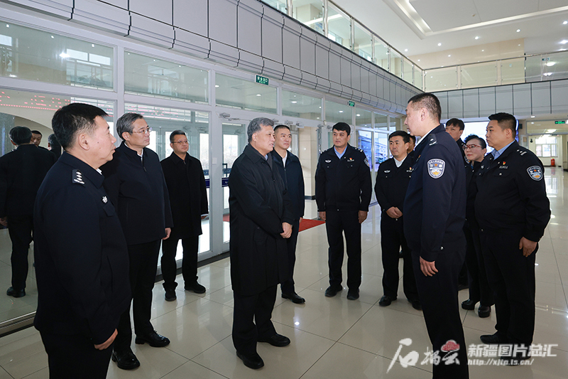 12月6日,自治区党委书记马兴瑞在乌鲁木齐市天山区公安分局,详细了解基层公安机关运行、警力下沉、矛盾纠纷化解和服务群众等工作进展。石榴云/新疆日报记者 崔志坚摄