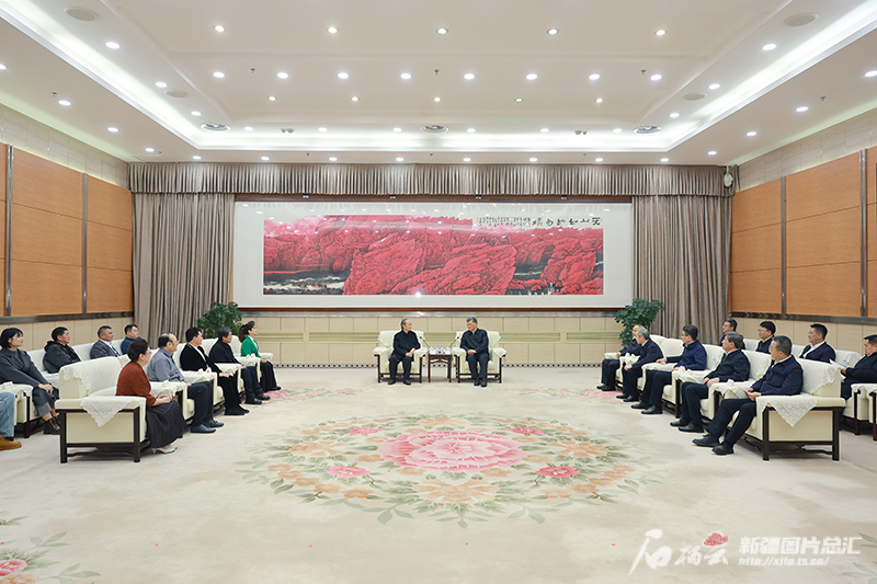 近日,自治区党委书记马兴瑞、自治区主席艾尔肯·吐尼亚孜在乌鲁木齐会见新疆文艺界代表。石榴云/新疆日报记者 崔志坚摄