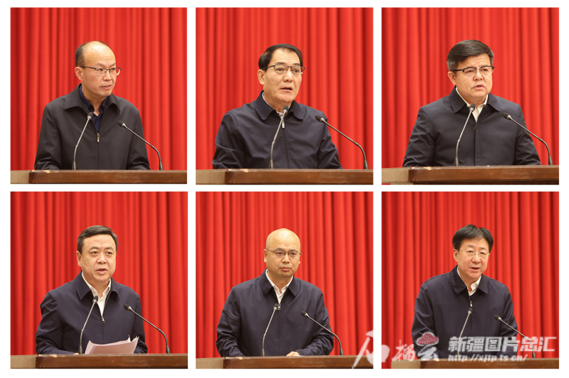 会上,自治区党委编办、自治区市场监督管理局、自治区团委、乌鲁木齐市、博尔塔拉蒙古自治州、阿克苏地区相关负责人依次发言(从左到右、从上到下)。石榴云/新疆日报记者 谢龙摄