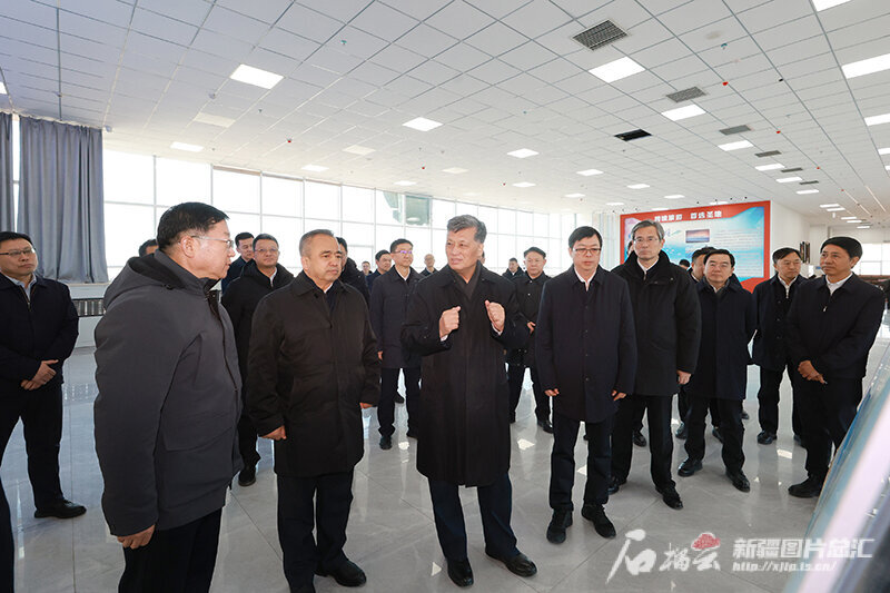 2月11日,自治区党委书记、兵团党委第一书记、第一政委马兴瑞,自治区党委副书记、自治区主席艾尔肯·吐尼亚孜来到新疆塔额兵地新材料科技园,听取园区规划建设和产业发展情况介绍。石榴云/新疆日报记者 崔志坚摄