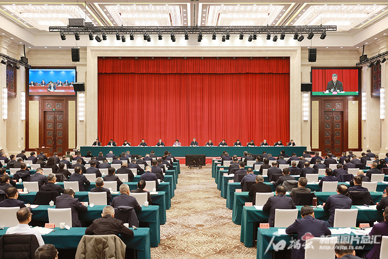 2月26日,新疆南疆工作会议在乌鲁木齐召开。自治区党委书记、兵团党委第一书记、第一政委马兴瑞出席会议并讲话。石榴云/新疆日报记者 崔志坚摄