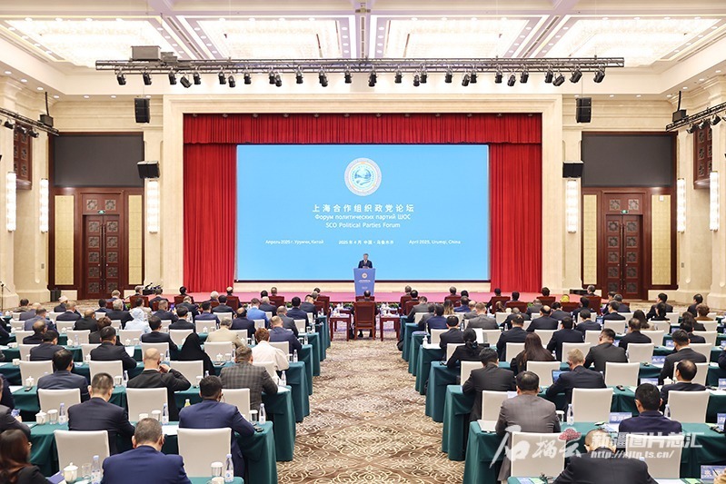 4月23日,由中共中央对外联络部和中共新疆维吾尔自治区委员会联合主办的上海合作组织政党论坛在新疆乌鲁木齐举行。石榴云/新疆日报记者 崔志坚 摄