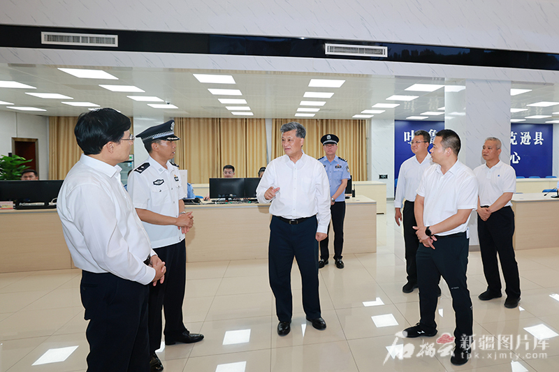 6月17日,自治区党委书记马兴瑞在托克逊县公安局,详细了解基层维护稳定措施落实、风险管控等情况。石榴云/新疆日报记者 崔志坚摄