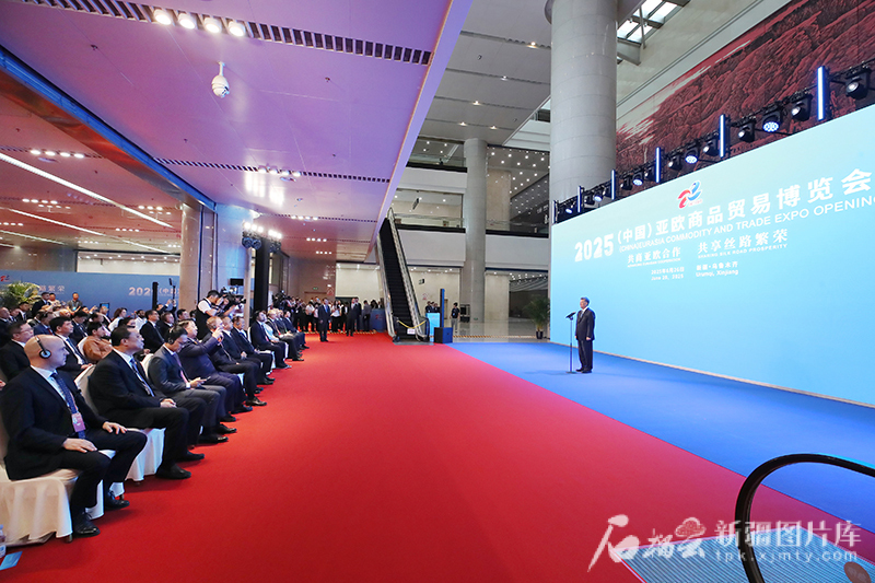 石榴云/新疆日报讯(记者 王兴瑞报道)6月26日,以“共商亚欧合作 共享丝路繁荣”为主题的2025(中国)亚欧商品贸易博览会在新疆国际会展中心开馆。自治区党委书记马兴瑞出席活动并宣布开馆。自治区党委副书记、自治区主席艾尔肯·吐尼亚孜致欢迎辞。